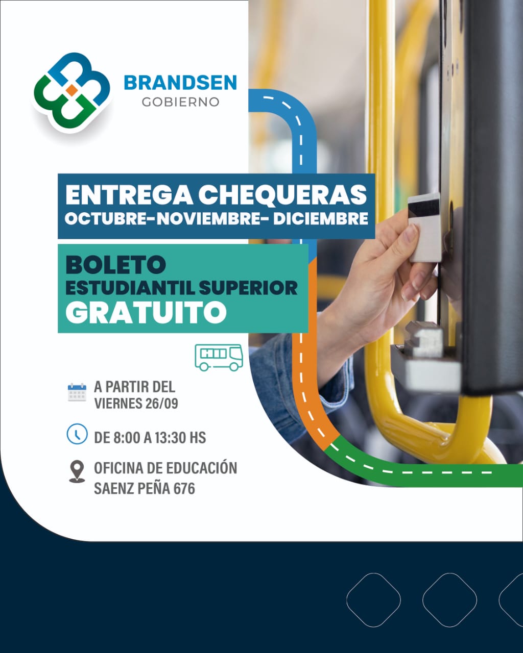 La Municipalidad de Brandsen informó que ya están disponibles las chequeras correspondientes a los meses de octubre, noviembre y diciembre del Boleto Estudiantil Superior Gratuito.