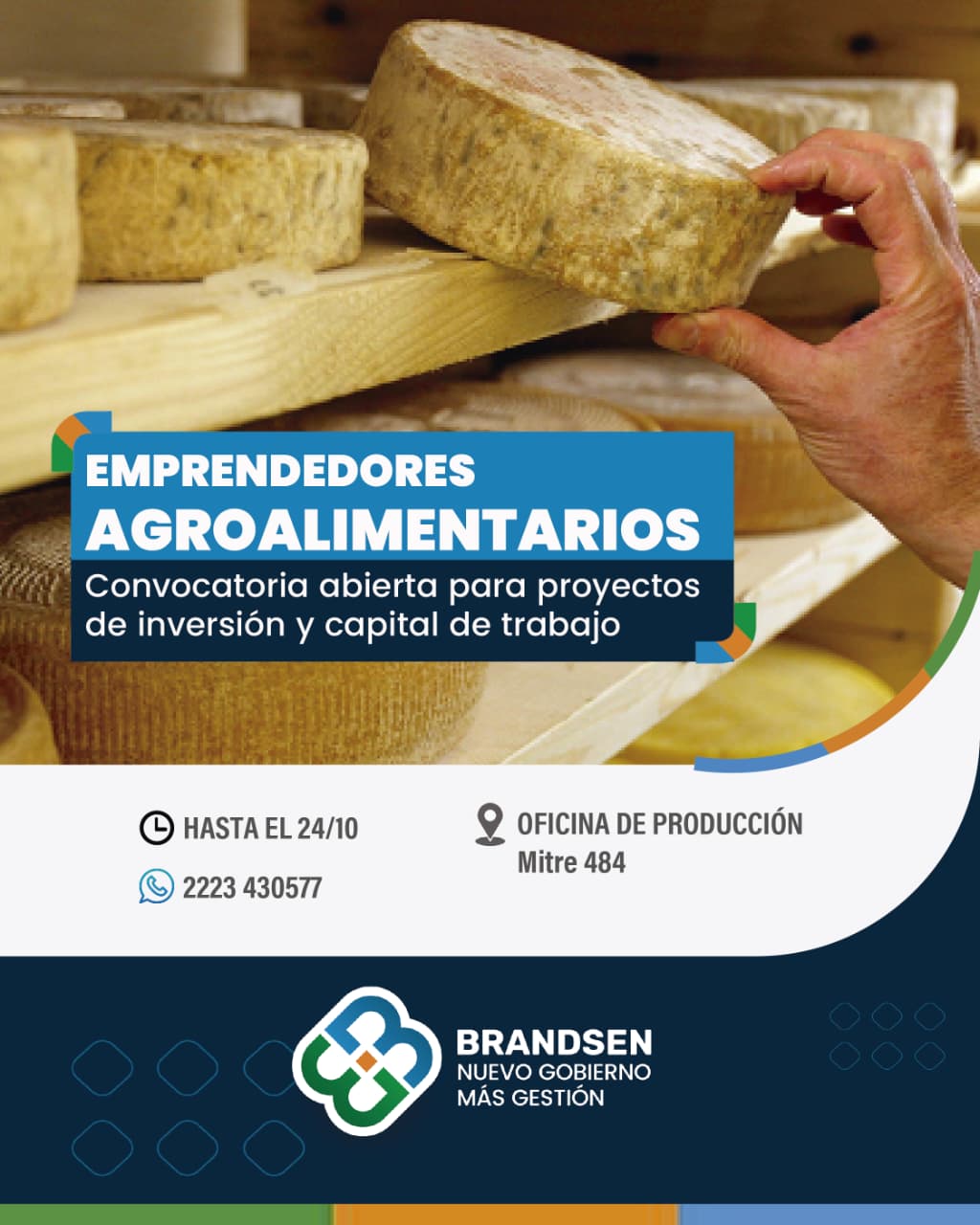 La Municipalidad de Brandsen informó que se encuentra abierta la inscripción para emprendedores agroalimentarios que deseen presentar proyectos de inversión o capital de trabajo.